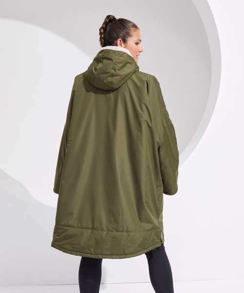 TriDri’s latest outerwear is essential in everyone’s wardrobe! The TriDri® All-seasons waterproof changing robe boasts a waterproof exterior with hood to keep you dry, as well as adjustable straps to the wrists and chin guard to help lock in heat on windy days. The cosy sherpa fleece interior absorbs moisture and keeps you warm, making it a great choice after water activities or rainy days on the football pitch. Designed to be oversized, the jacket is ideal for changing into warm, dry clothes, offering a double zip – so more room to move! Featuring multiple deep pockets, inside and out, it’s not just for athletes, but perfect for rainy commutes or frosty walks with the dog.